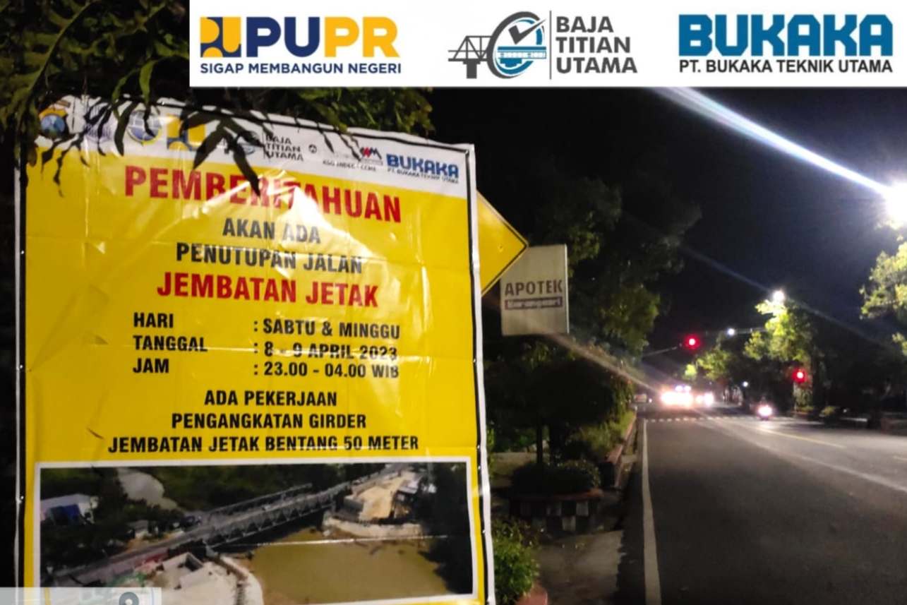 “Rekayasa arus lalu lintas sementara kita lakukan untuk perbaikan Jembatan, dimana akan dilaksanakan pengangkatan Girder Jembatan Jetak Bentang 50 meter,” jelasnya.