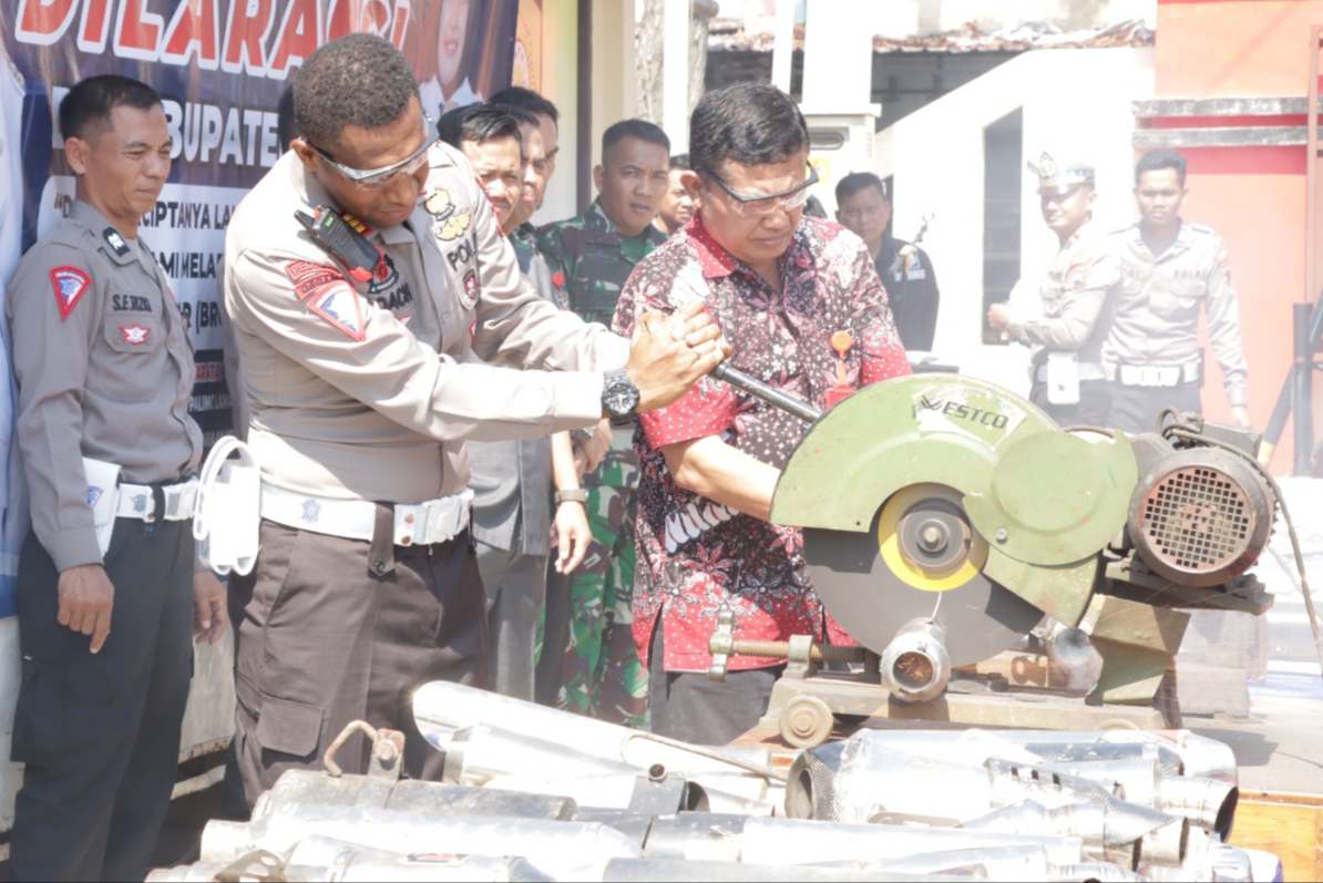 “Pagi ini kita akan melaksanakan pemusnahan atas kegiatan operasional penegakan hukum terhadap pelanggaran knalpot tidak standart (brong),” ungkap AKBP Agus Puryadi bersama Forkopimda.