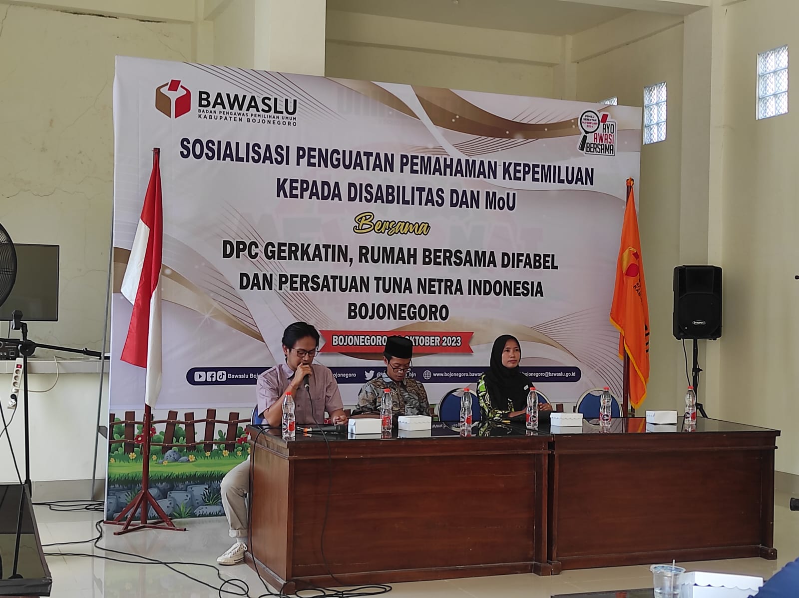 Selain sosialisasi juga dilakukan MoU antara Bawaslu dengan DPC Gerkatin, Rumah Bersama Difabel dan Persatuan tuna netra Indonesia Bojonegoro.