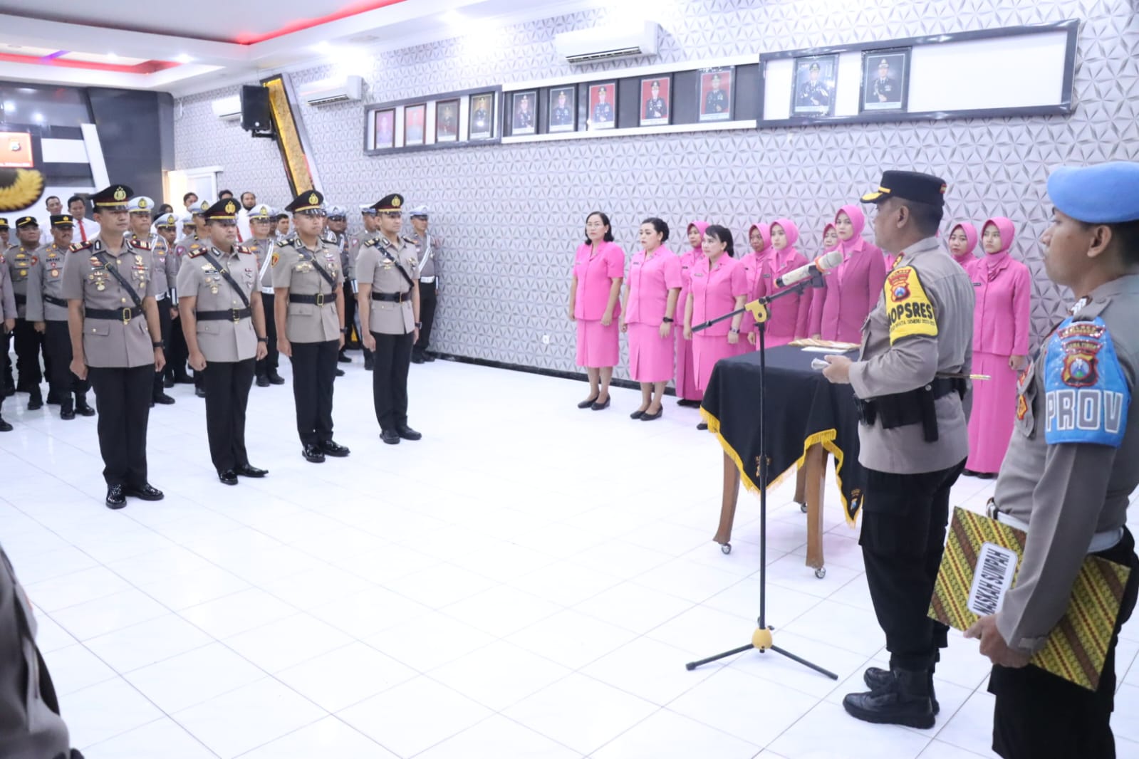 Bojonegoro – Kapolres Bojonegoro, AKBP Rogib Triyanto, SIK memimpin upacara serah terima jabatan (sertijab) dua pejabat utama(PJU) di Gedung AP I Rawi, Polres Bojonegoro, Sabtu(21/10/2023).