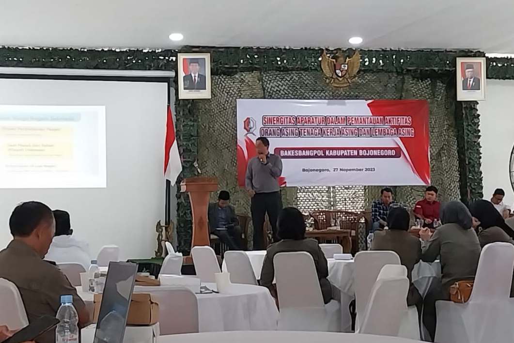 Kepala Bakesbangpol Kabupaten Bojonegoro Mahmudi menjelaskan era urbanisasi kini tentu terdapat keterbukaan terhadap tenaga kerja asing. Sehingga dengan kegiatan ini diharapkan bisa menjalin sinergisitas dan menyamakan persepsi lintas sektoral dalam pemantauan orang asing di Bojonegoro.