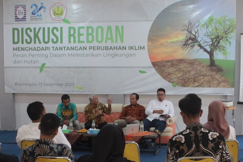 BOJONEGORO – IDFoS Indonesia menggelar Diskusi Reboan bertema “Menghadapi Tantangan Perubahan Iklim: Peran Penting dalam Melestarikan Lingkungan dan Hutan.” Diskusi ini diadakan sebagai bagian dari rangkaian kegiatan harlah IDFoS Indonesia yang ke-25 Tahun.