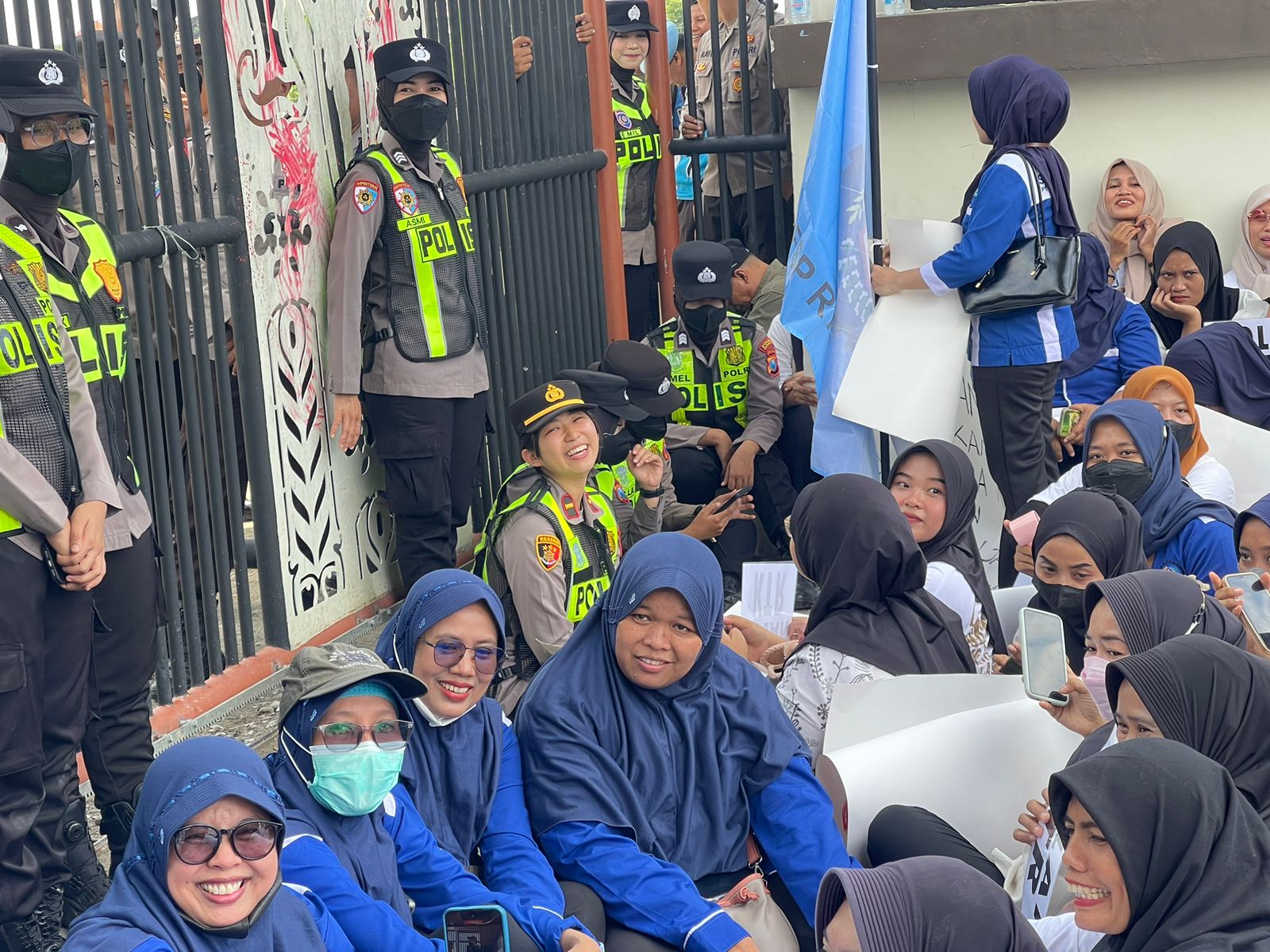Tindakan sederhana namun bermakna itu menjadi pemandangan menarik di sela-sela pengamanan. Para Polwan tampak duduk berdampingan dengan massa, berbincang santai tanpa sekat, menciptakan suasana yang akrab dan menenangkan di tengah dinamika aksi.
