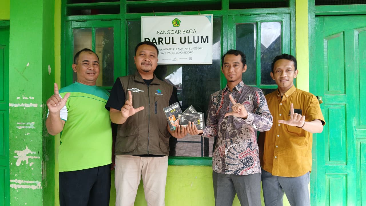Bojonegoro – Sebagai wujud komitmen dalam mendukung pendidikan anak di wilayah penghasil tembakau, Relawan Literasi Masyarakat (Relima) Perpusnas RI Lokus Kabupaten Bojonegoro menyerahkan bantuan buku kepada Sanggar Baca Madrasah Ibtidaiyah (MI) Darul Ulum, Desa Purwoasri, Kecamatan Sukosewu, Kabupaten Bojonegoro, Kamis (11/12/25).
