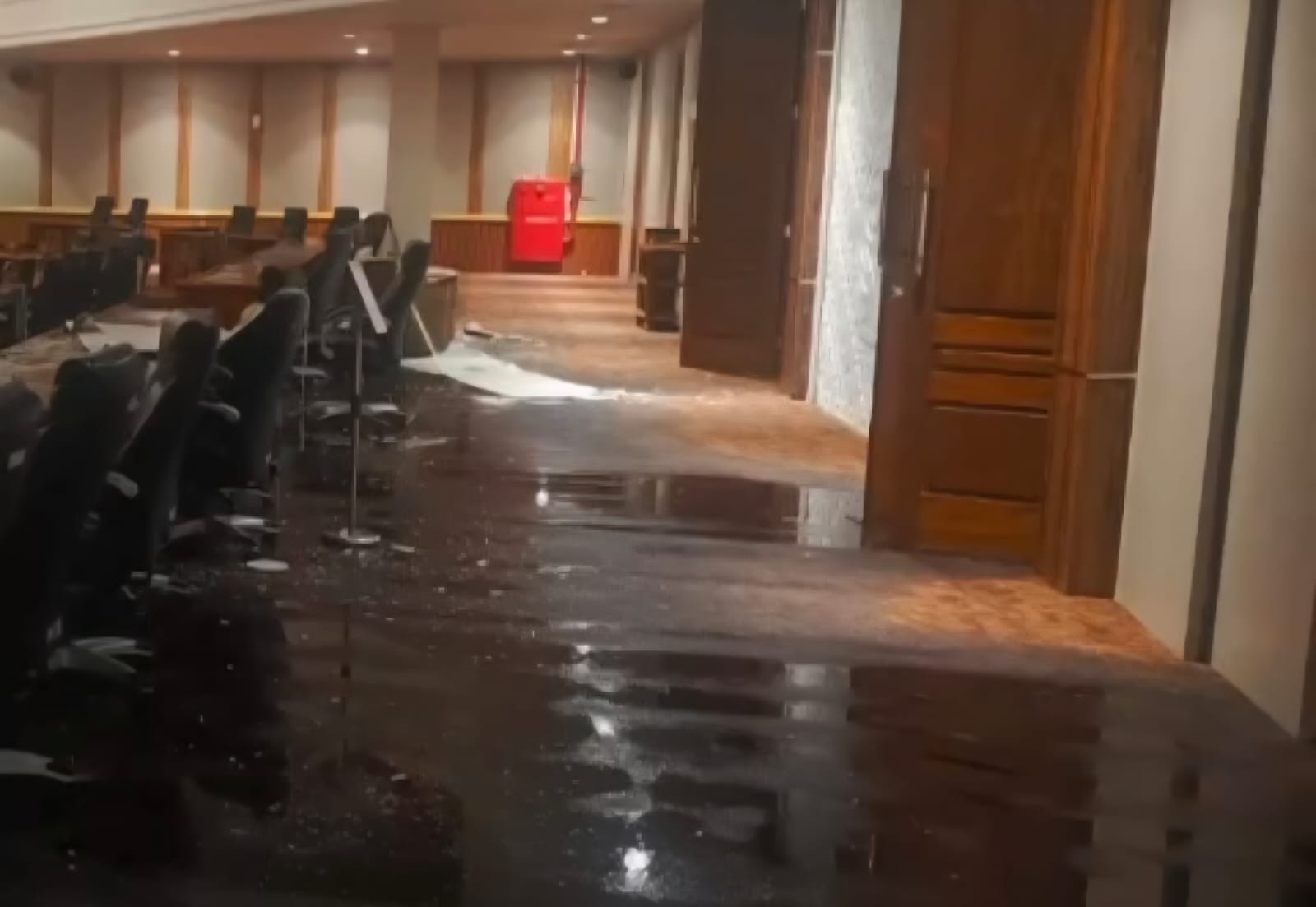 “Kejadiannya Selasa sore saat hujan deras sekali. Titik yang ambrol ada di bagian atap tepat di atas pintu masuk ruang paripurna. Estimasinya sekitar 25 meter kali 5 meter,” terang Umar.